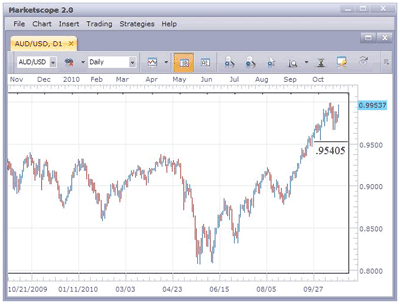 The move up through the 1.000 level is important if for nothing more than psychological reasons. It is not unusual for a market to make a couple of runs to this price level before moving through. The AUD/USD uptrend is strong, and I would continue to look for short-term buys as long as the pair remains above the .95405 low noted on the chart.
