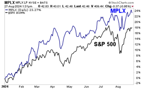The S&P 500 is up 18% since the start of the year, which is VERY good. But MPLX is up 23% at the same time - AND you get a fat dividend to boot!
