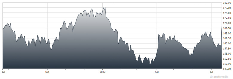 But the Dow Jones Industrial Average was another story entirely. The stodgier, old-school index rose 160 points, or 0.5%, on the day. That was its ninth-straight advance, the longest positive streak since 2017. The healthcare products and pharmaceutical giant Johnson & Johnson (JNJ) surged more than 6% on stronger-than-expected Q2 profits. It’s now trading at its highest level since January.
