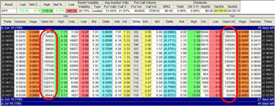 By contrast, Figure 2 is showing high open interest. The underlying asset is SPY, or SPDR S&P 500. Notice that the smallest open interest is in the four digits, namely, the June 103 call, which has 9,742 contracts. By the way, SPY is one of the most liquid ETFs.