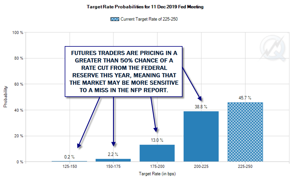 When it comes to the foreign exchange market, the primary way that the Employment Situation Report influences markets is through its impact on monetary policy. As we noted last month, the Federal Reserve has made a big dovish shift and the median member now doesn’t expect to raise interest rates whatsoever this year; markets have gone a step further and are now pricing more than 50% odds of an interest rate cut from the Fed this year: