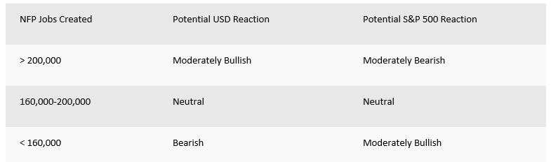 As a reminder, economists expect the report to show 180k in net new jobs, with the unemployment rate holding steady at 3.8% and average hourly earnings rising 0.3% month over month. Against this backdrop, traders may be more sensitive to a miss relative to the headline expectations than a stronger report.