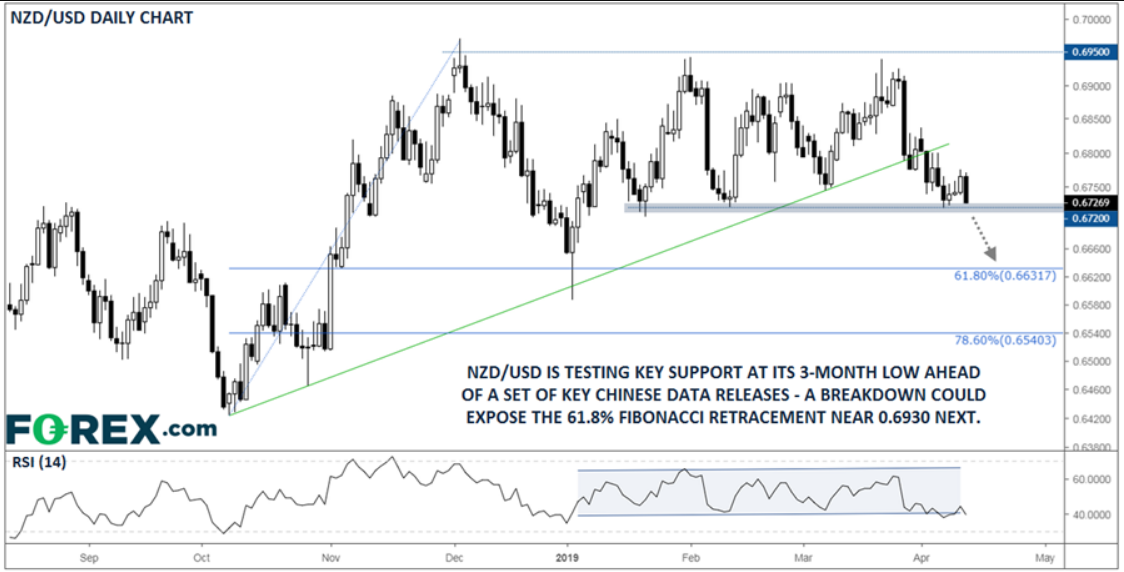 The New Zealand dollar is testing key levels ahead of important Chinese reports next week, notes Matt Weller.