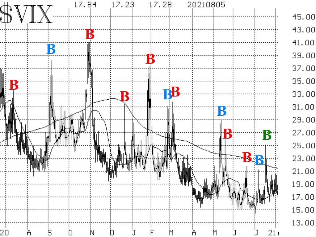 The SPX Volatility Index (VIX) "spike peak" buy signalfrom July 20th is still in place. Moreover, the trend of VIX continues lower. That is, the 200-day moving average is falling. So, these are positive signals for the overall stock market.