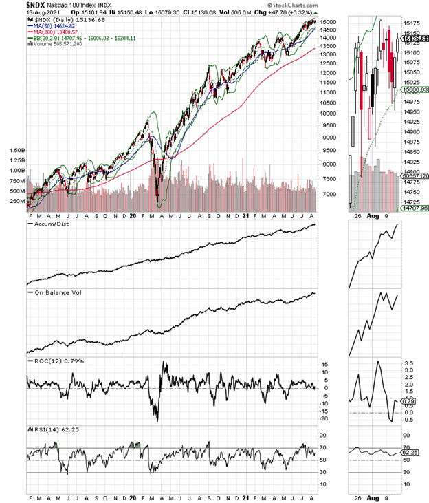 The S&P 500 (SPX) and the Nasdaq 100 (NDX) held up fairly well with SPX delivering a new high and NDX again remaining not too far behind.