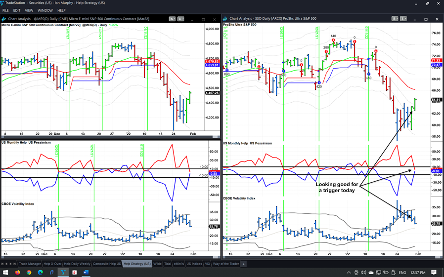 This would be the first Help trigger of 2022 and would follow in the heels of a false positive trigger on January 11, which was stopped out four days after the entry, but I closed out after two days in my personal account (red arrows above). As always, the decision to enter or not will be made about 15 minutes before the close of the regular session.