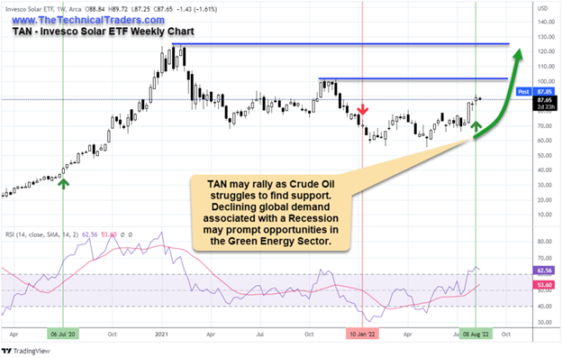 The Invesco Solar Energy ETF (TAN) may rally more than 15% to levels above $101 before possibly continuing higher to retest the $120 to $125 2021 highs.