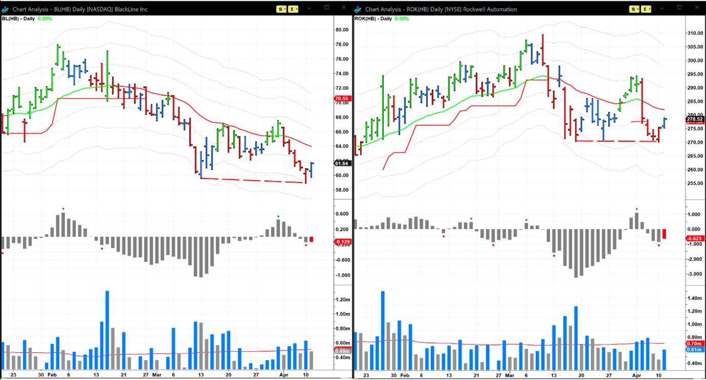 BlackLine Inc. (BL) is an LA-based provider of cloud-based solutions for Finance & Accounting. Previous earnings were on Valentine's Day with the next announcement due on May 16 (ish). BL triggered yesterday—the volume could be better; I would prefer to see it declining. The initial protective stop is $58.57.