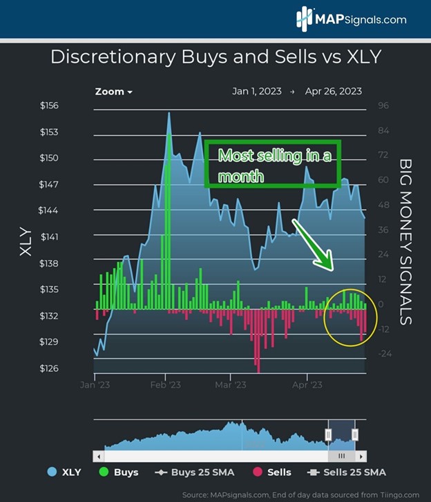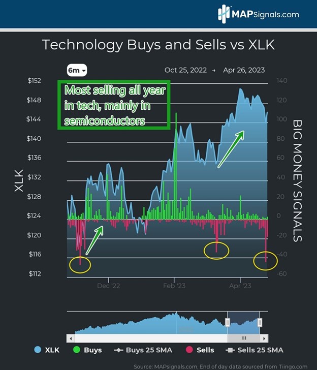 That’s not where the Big Money action is at. The latest rotation is in 2 of the strongest groups in our data this year: Discretionary and Technology. This is interesting because these areas have been in pole position in 2023.