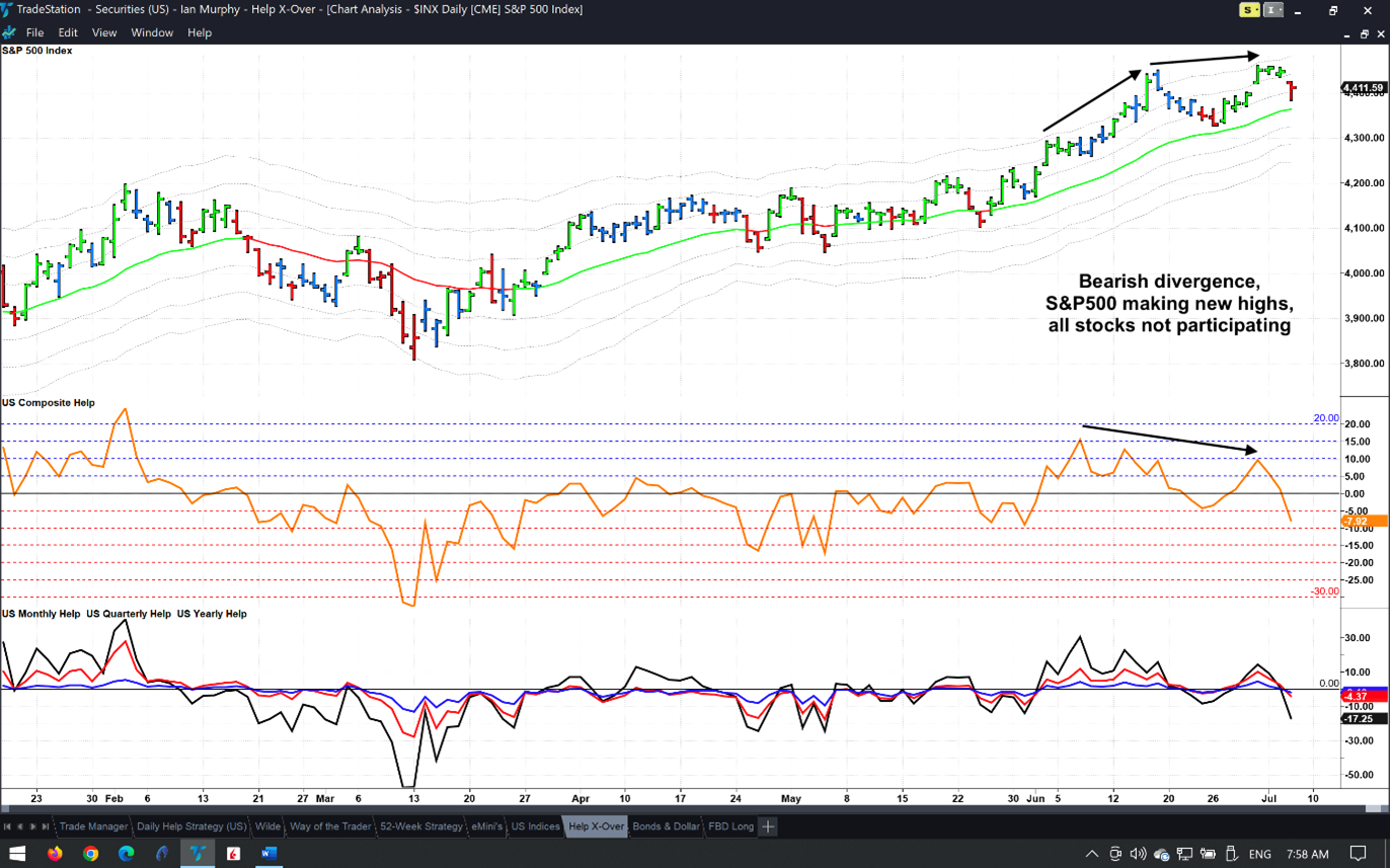 This implies the heavily weighted stocks on the S&P 500 (SPX) were making higher highs while the ‘regular stocks’ had already started to decline.