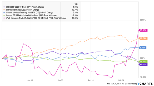 SPY, GLD, TLT, UUP, VXX (YTD % Change)